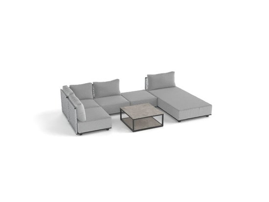 - Table top: Glass plate with ceramic look Please note that the side straps do not have a water-repellent coating and should therefore be protected from moisture and rain.